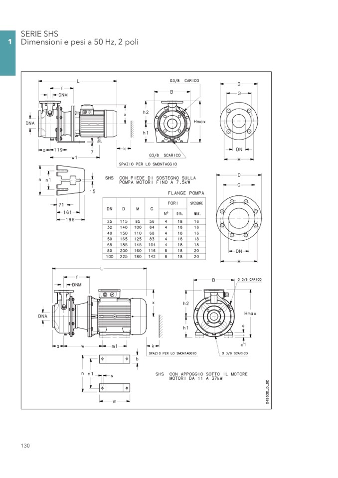 1 Dimensioni e pesi a 50 Hz, 2 poli