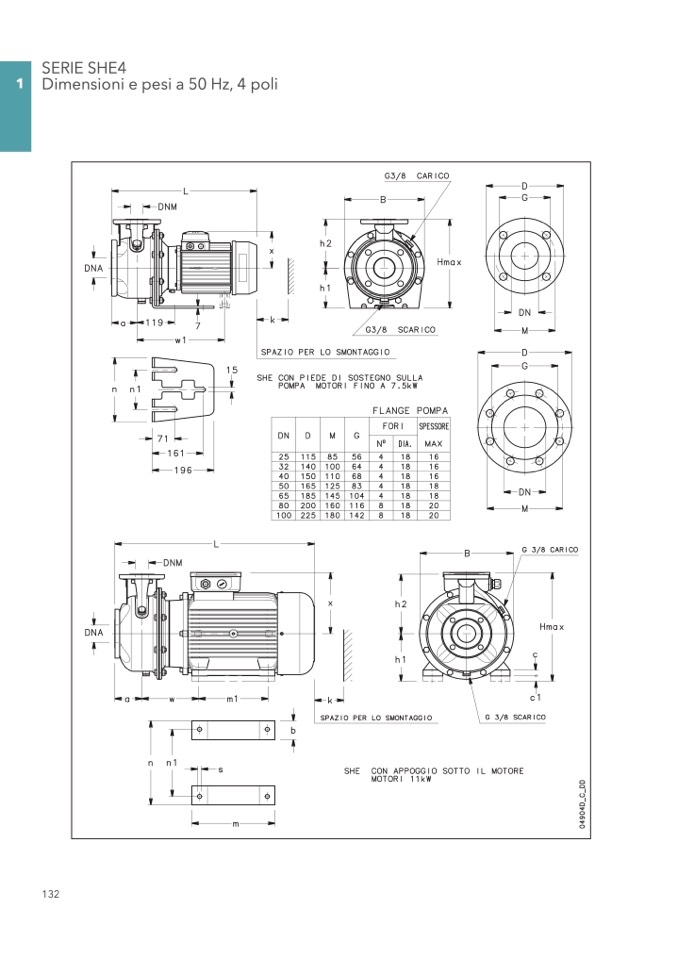 1 Dimensioni e pesi a 50 Hz, 4 poli