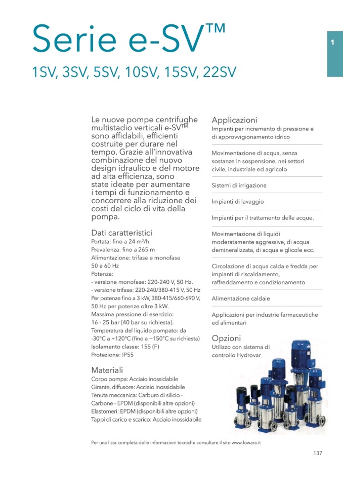 Per una lista completa delle informazioni tecniche consultare il sito www.lowara.it