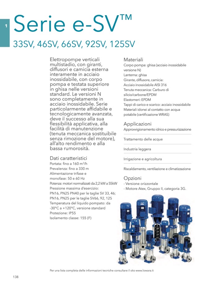 Per una lista completa delle informazioni tecniche consultare il sito www.lowara.it