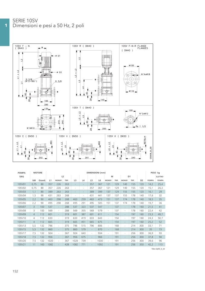 1 Dimensioni e pesi a 50 Hz, 2 poli
