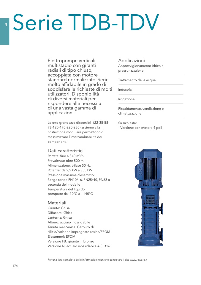 Per una lista completa delle informazioni tecniche consultare il sito www.lowara.it