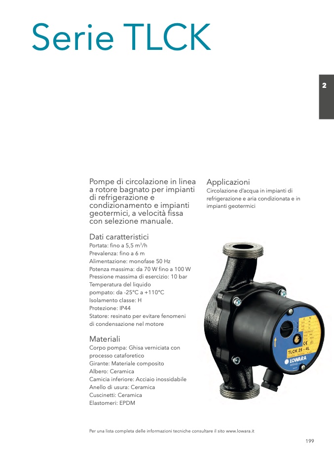 Per una lista completa delle informazioni tecniche consultare il sito www.lowara.it