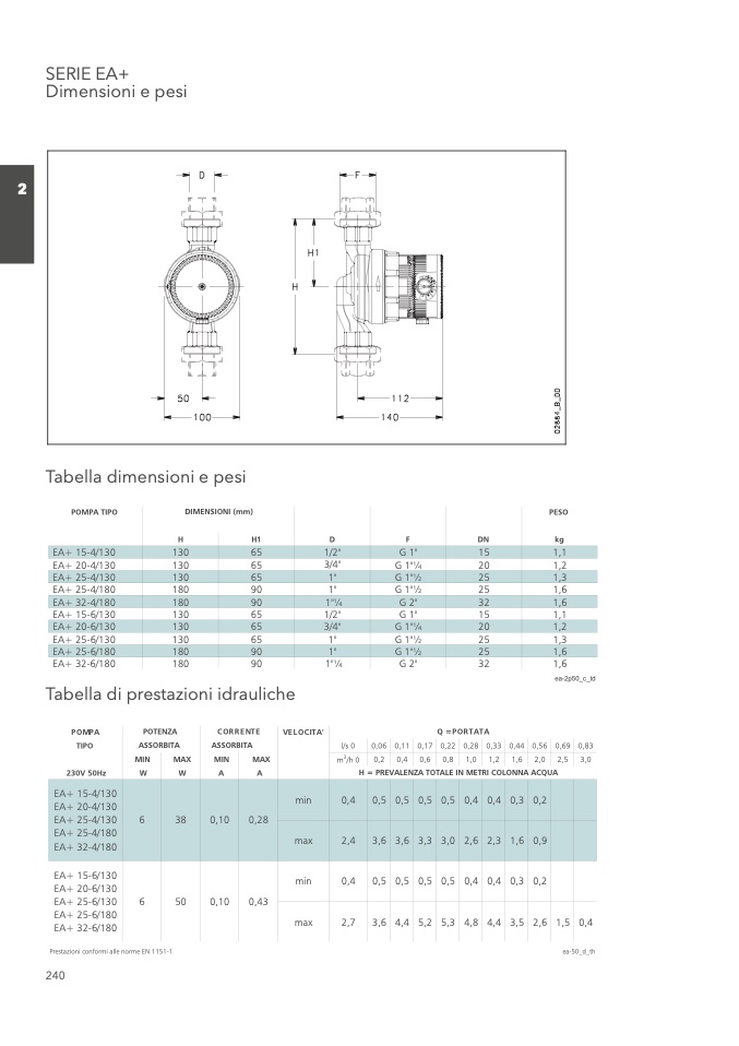 Prestazioni conformi alle norme EN 1151-1