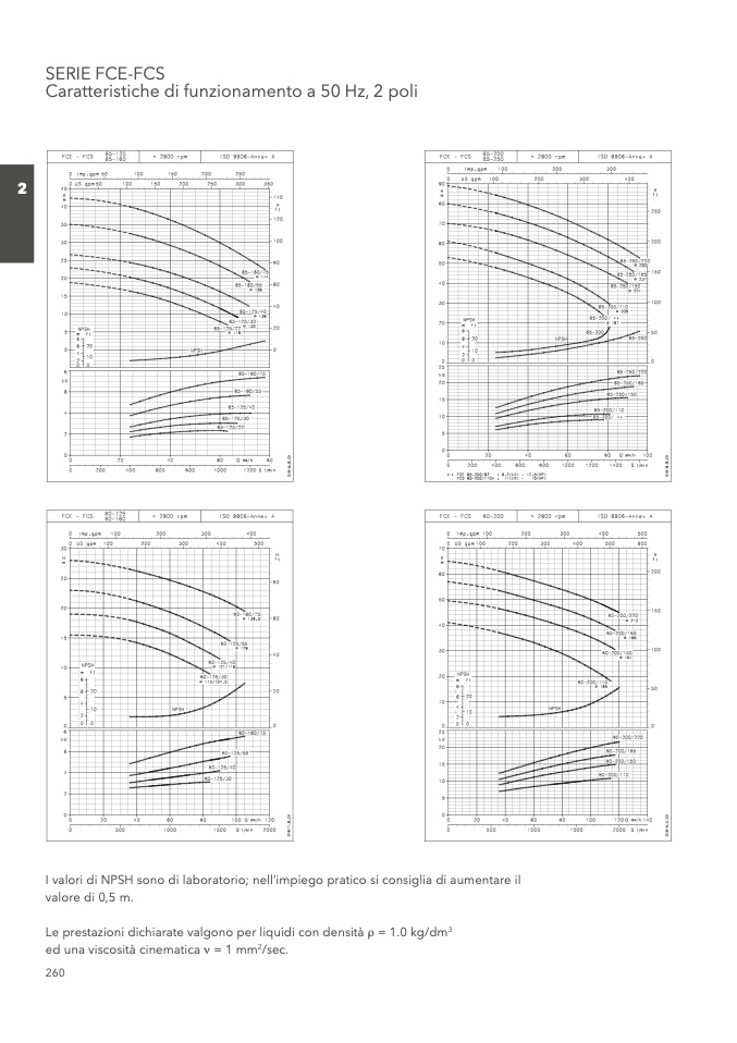 I valori di NPSH sono di laboratorio; nell’impiego pratico si consiglia di aumentare il