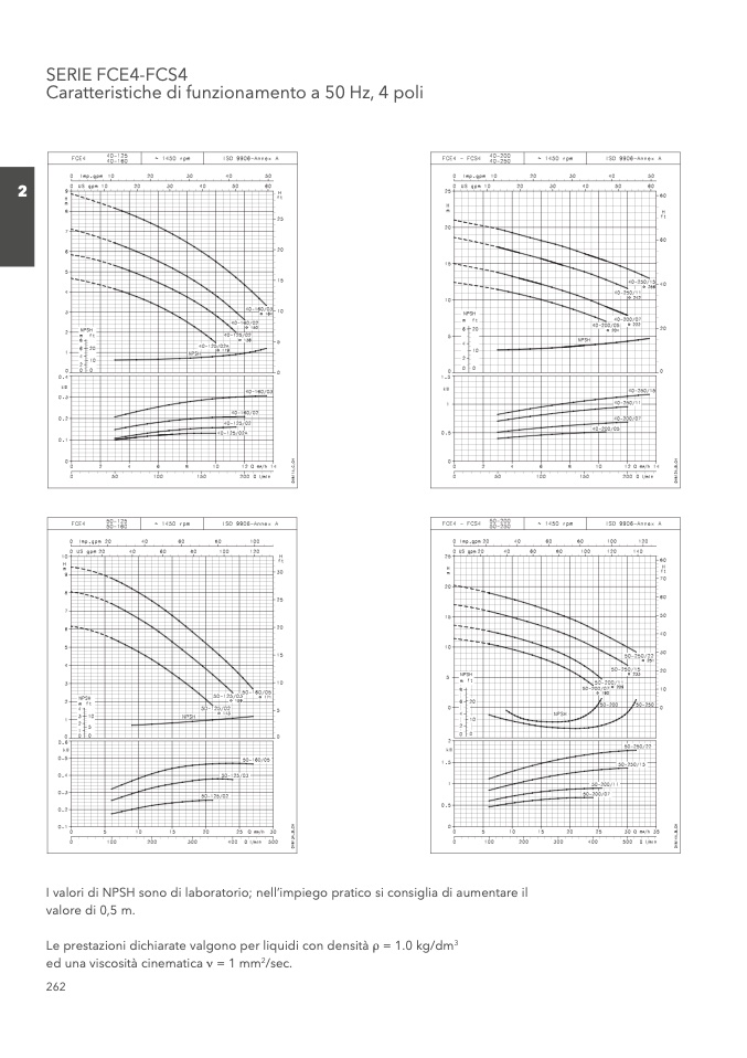 I valori di NPSH sono di laboratorio; nell’impiego pratico si consiglia di aumentare il