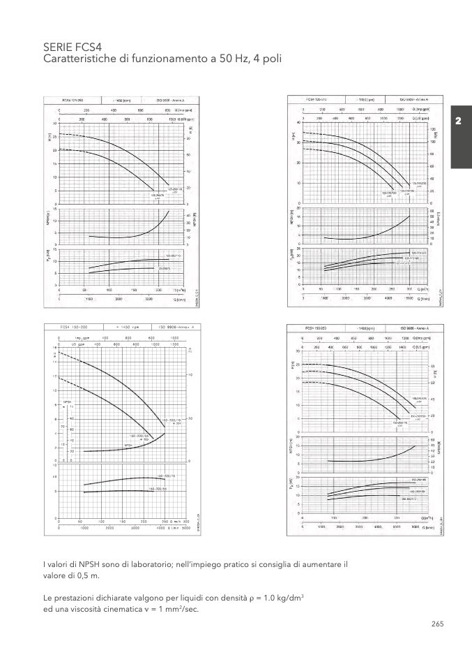 I valori di NPSH sono di laboratorio; nell’impiego pratico si consiglia di aumentare il