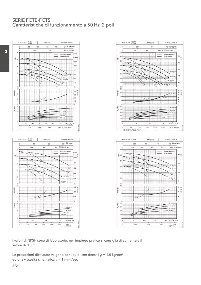 I valori di NPSH sono di laboratorio; nell’impiego pratico si consiglia di aumentare il