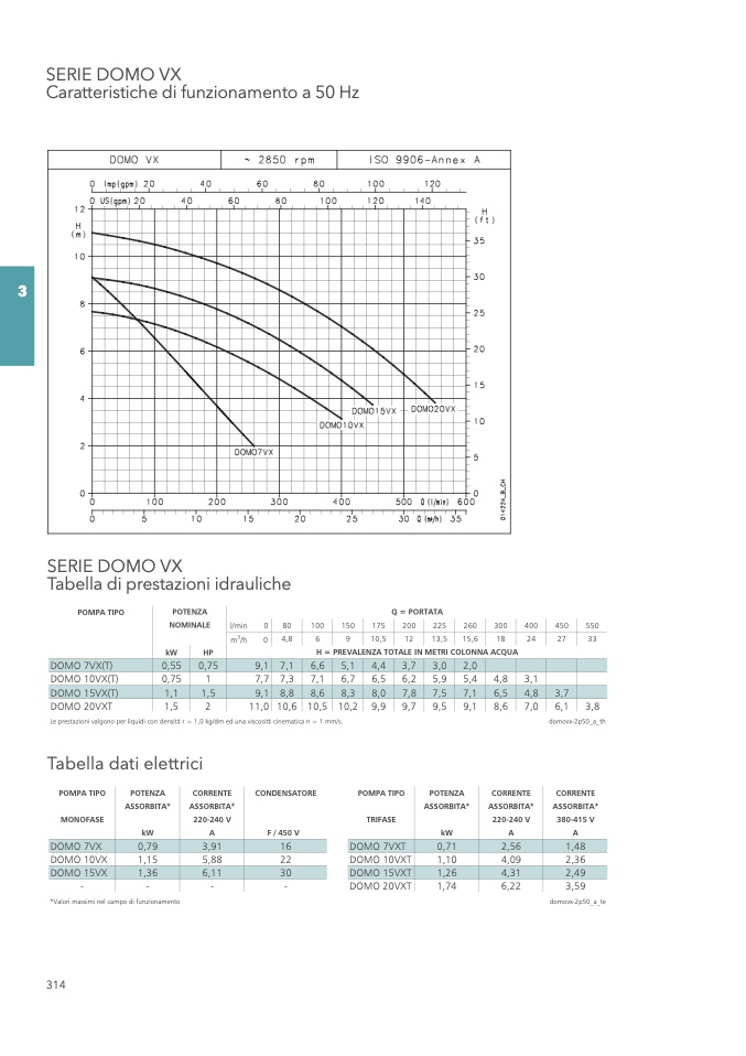 Le prestazioni valgono per liquidi con densit‡ r = 1,0 kg/dm ed una viscosit‡ cinematica n = 1 mm/s.