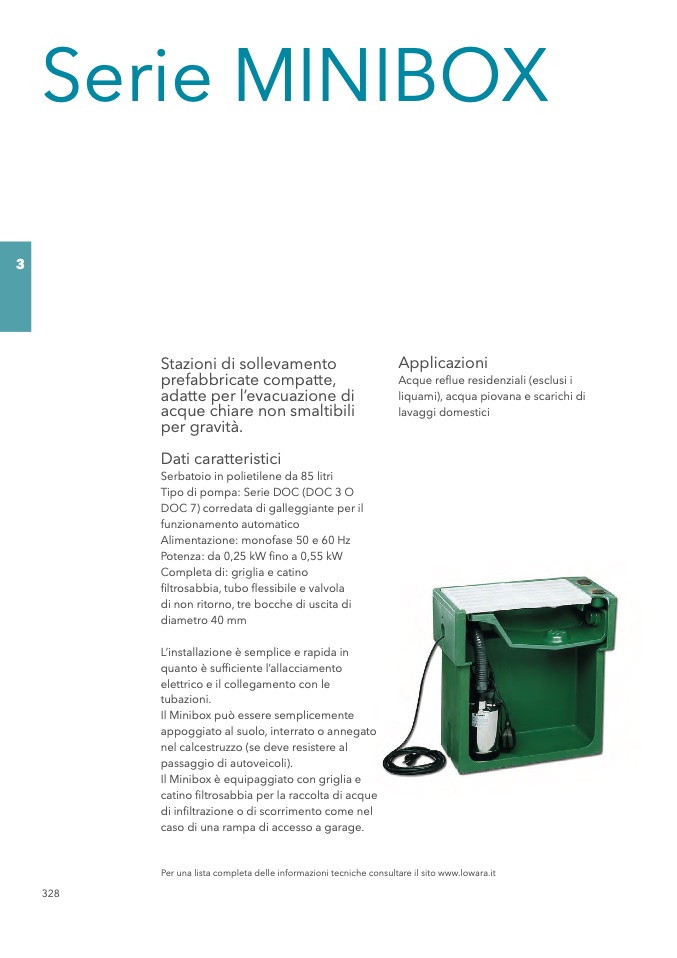 Per una lista completa delle informazioni tecniche consultare il sito www.lowara.it