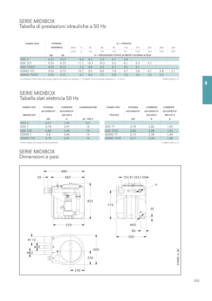 Le prestazioni (riferite alla sola pompa) valgono per liquidi con densit