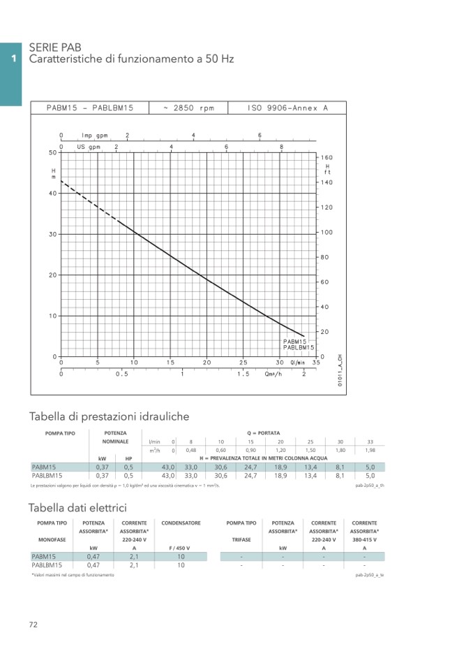 Le prestazioni valgono per liquidi con densità = 1,0 kg/dm