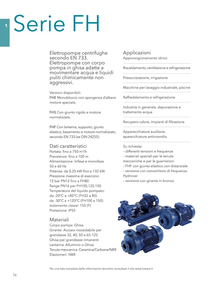 Per una lista completa delle informazioni tecniche consultare il sito www.lowara.it