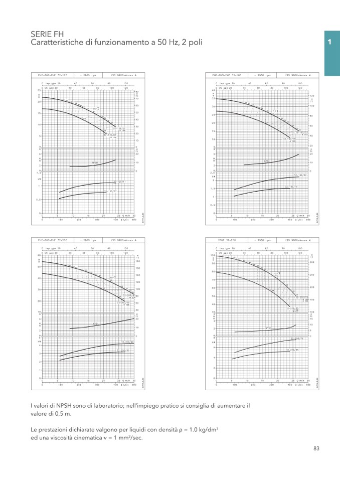 I valori di NPSH sono di laboratorio; nell’impiego pratico si consiglia di aumentare il