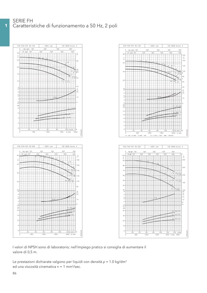 I valori di NPSH sono di laboratorio; nell’impiego pratico si consiglia di aumentare il