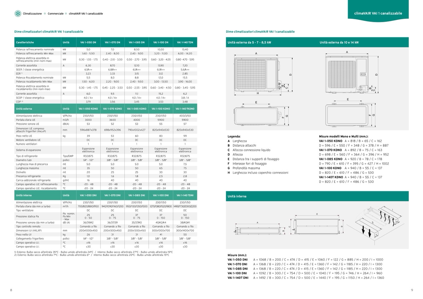 Dime climatizzatori climaVAIR VAI 1 canalizzabile