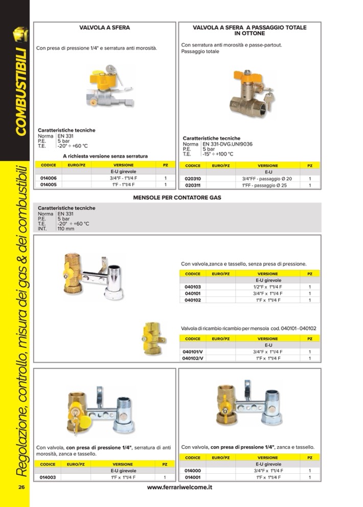 Con valvola, con presa di pressione 1/4", zanca e tassello.