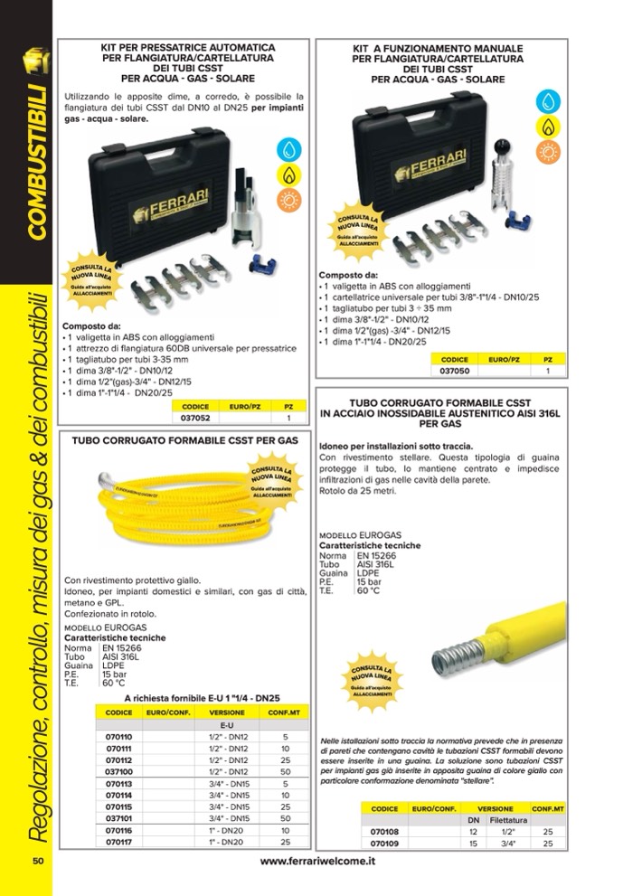 flangiatura dei tubi CSST dal DN10 al DN25 per impianti