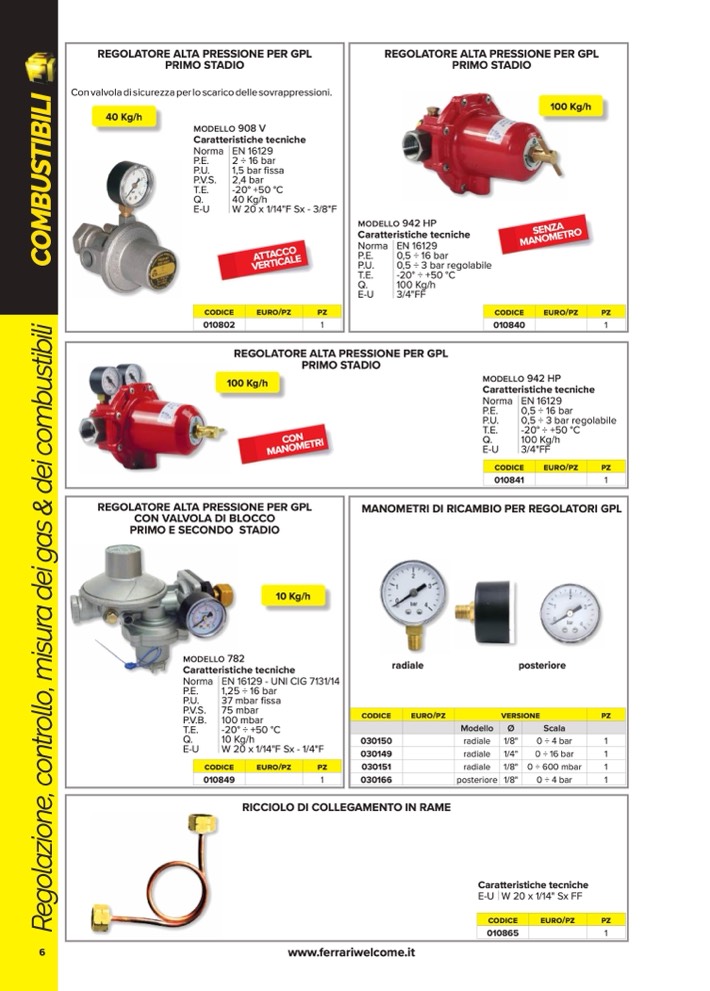 MANOMETRI DI RICAMBIO PER REGOLATORI GPL
