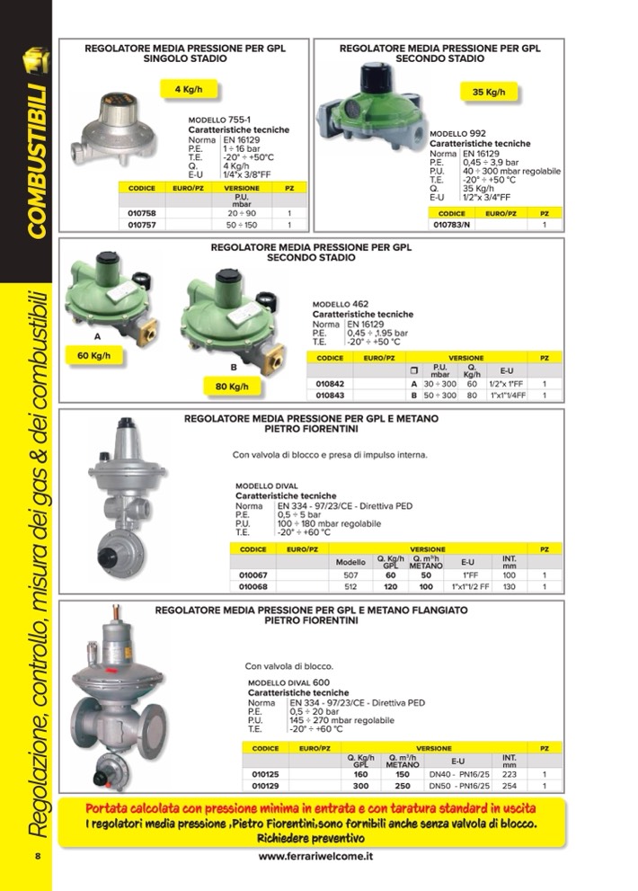 REGOLATORE MEDIA PRESSIONE PER GPL E METANO