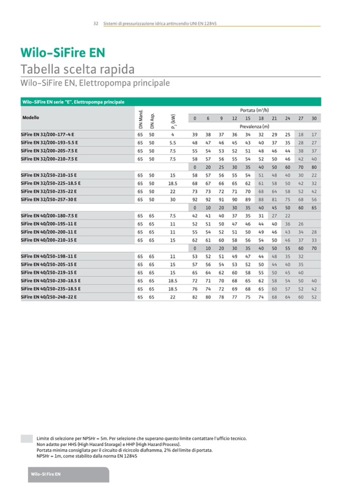 Limite di selezione per NPSHr = 5m. Per selezione che superano questo limite contattare l’ufcio tecnico.