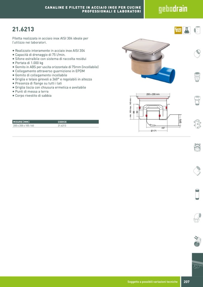 • Sifone estraibile con sistema di raccolta residui