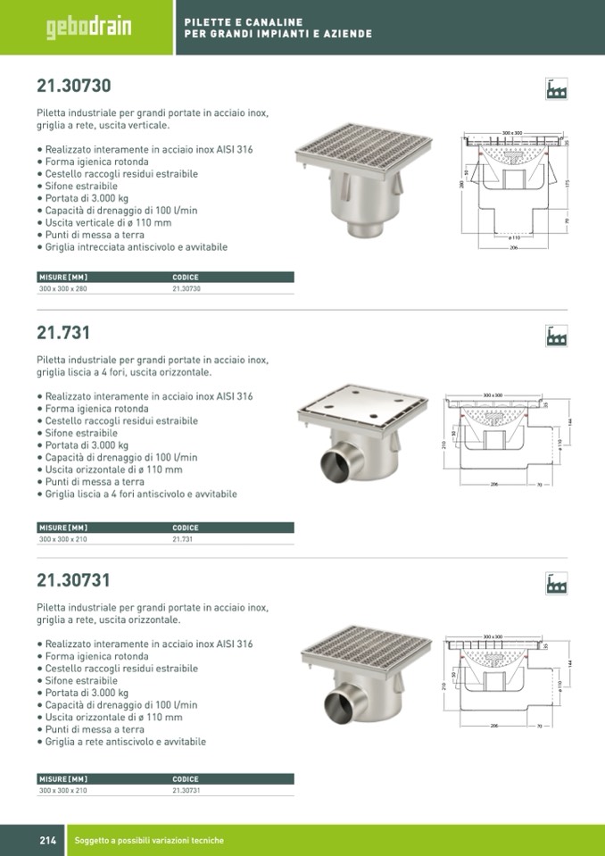 • Uscita verticale di ø 110 mm