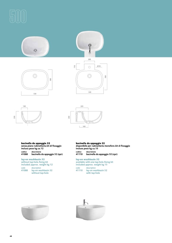 lay-on washbasin 52