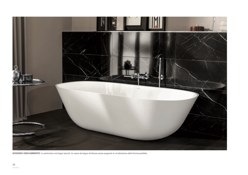 SODDISFA OGNI AMBIENTE: in particolare nei bagni piccoli, la vasca da bagno Antheus senza supporto è un’attrazione dalla forma perfetta.