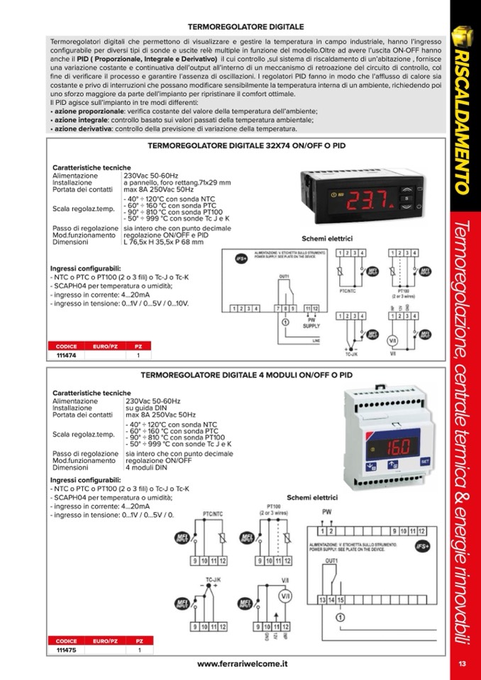 Termoregolatori digitali che permettono di visualizzare e gestire la temperatura in campo industriale, hanno l’ingresso