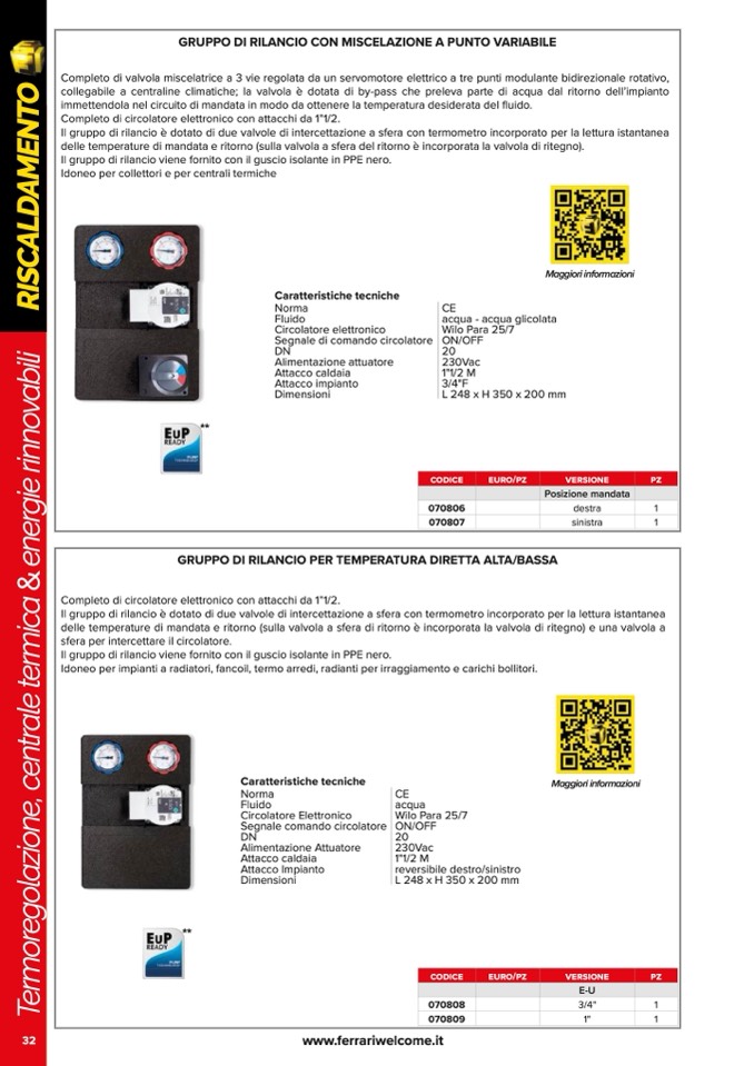 GRUPPO DI RILANCIO PER TEMPERATURA DIRETTA ALTA/BASSA