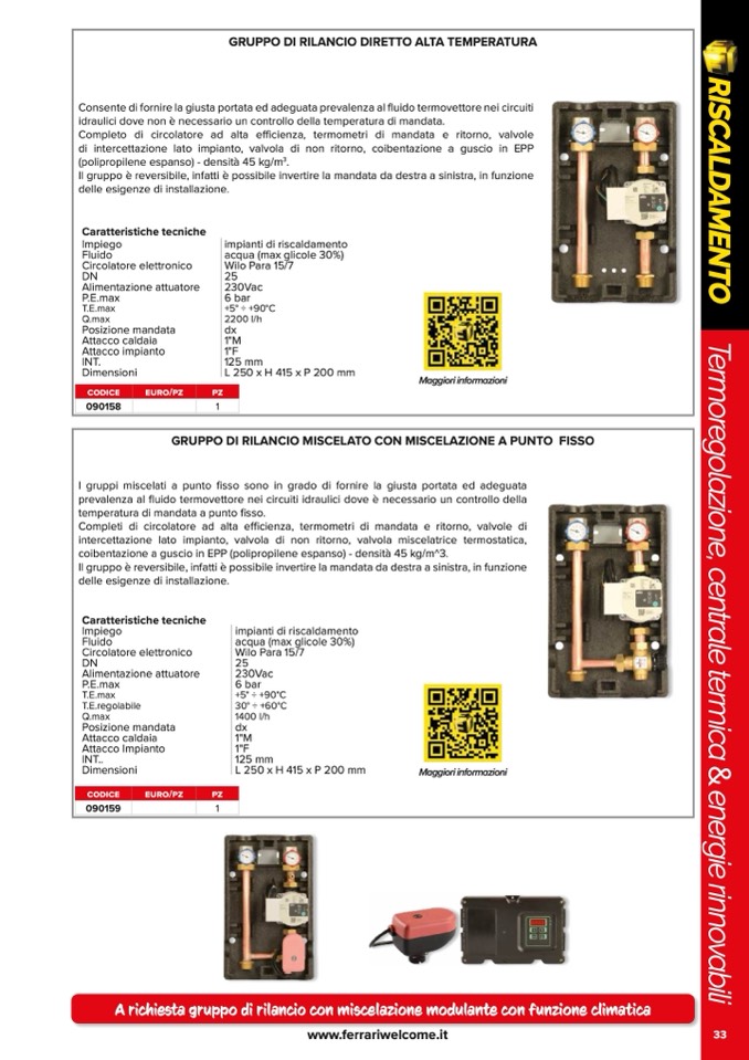 Completi di circolatore ad alta efficienza, termometri di mandata e ritorno, valvole di