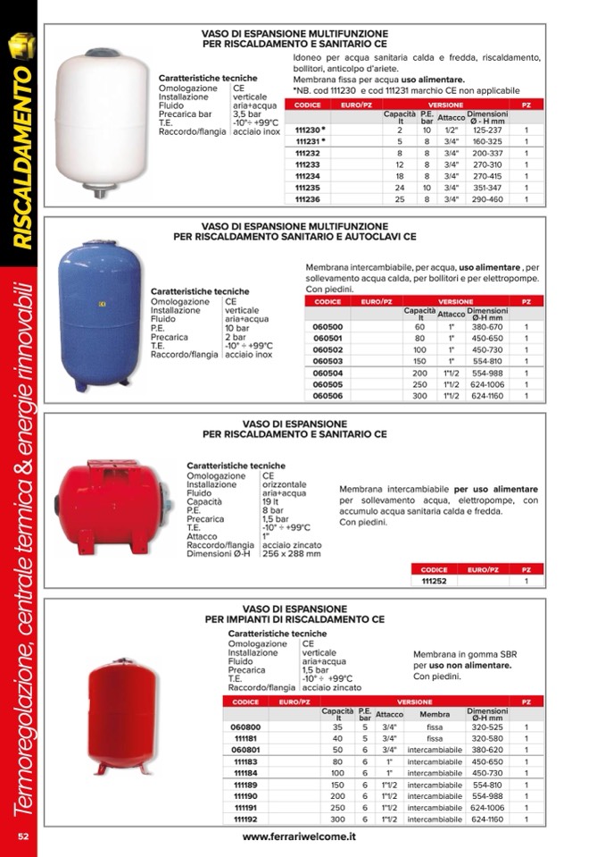 sollevamento acqua calda, per bollitori e per elettropompe.