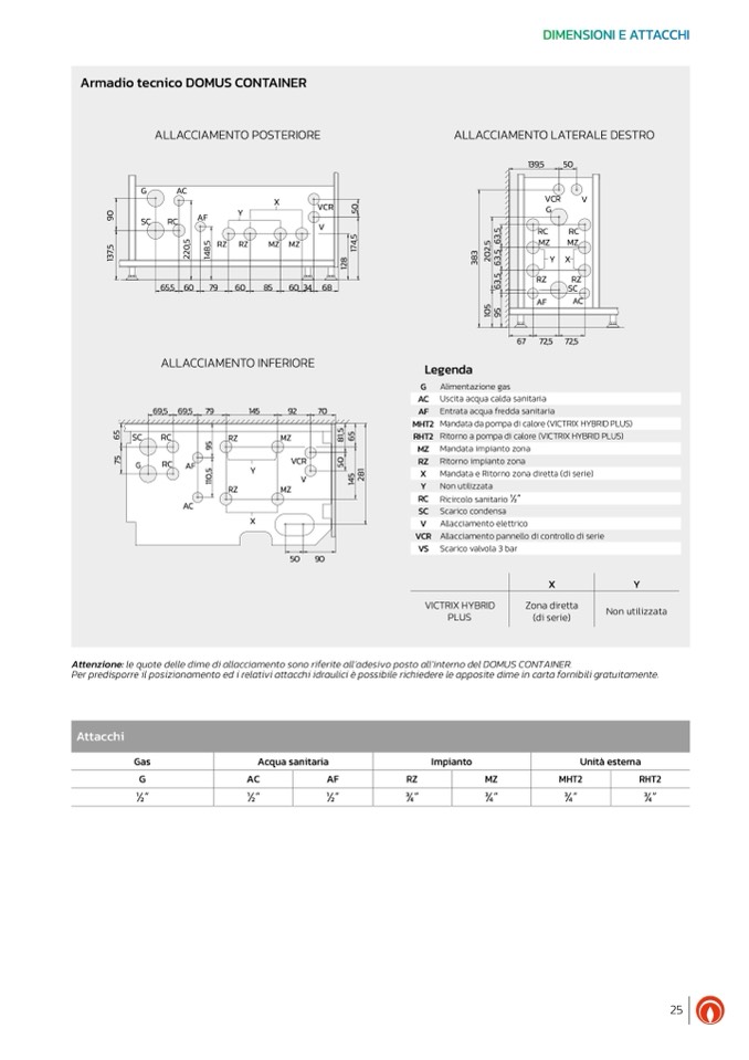 Attenzione: le quote delle dime di allacciamento sono riferite all’adesivo posto all’interno del DOMUS CONTAINER.