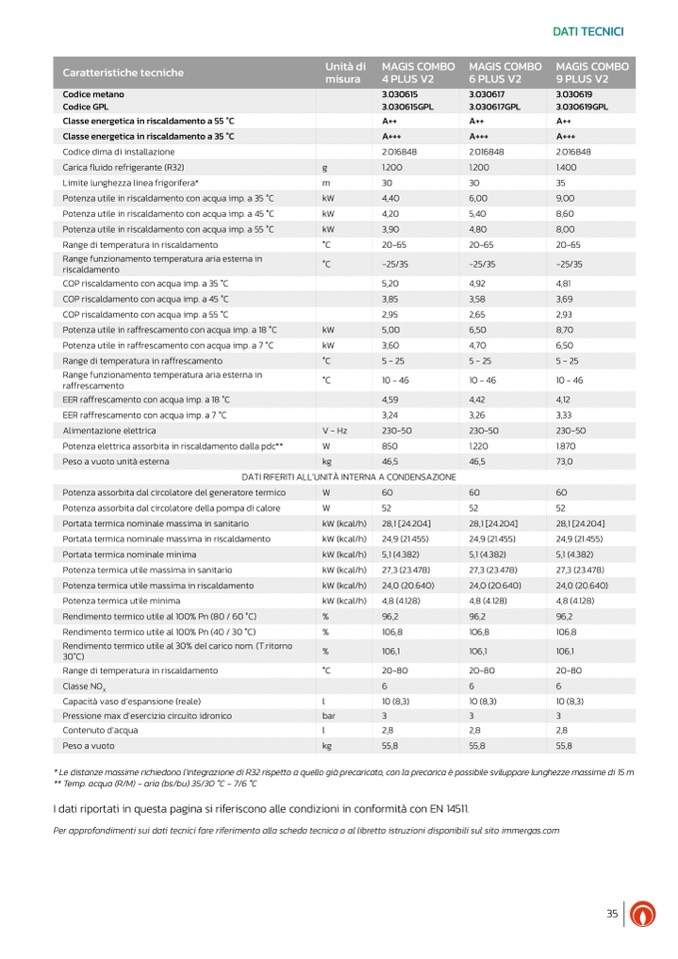 ** Temp. acqua (R/M) - aria (bs/bu) 35/30 °C - 7/6 °C