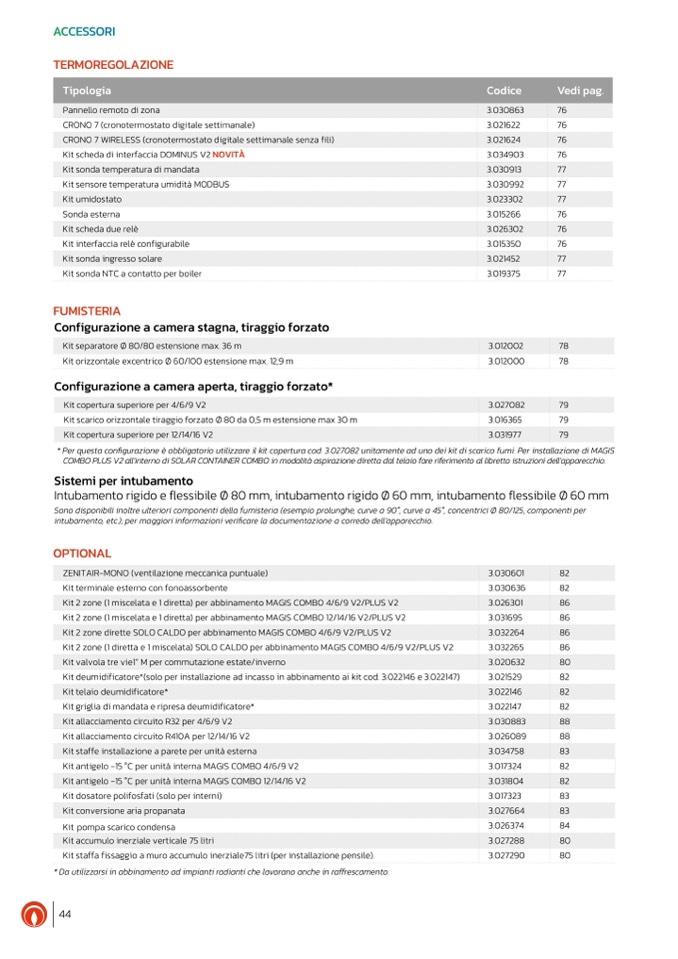 Sono disponibili inoltre ulteriori componenti della fumisteria (esempio prolunghe, curve a 90°, curve a 45°, concentrici Ø 80/125, componenti per