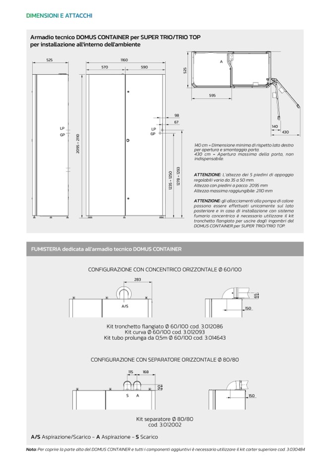 Nota: Per coprire la parte alta del DOMUS CONTAINER e tutti i componenti aggiuntivi