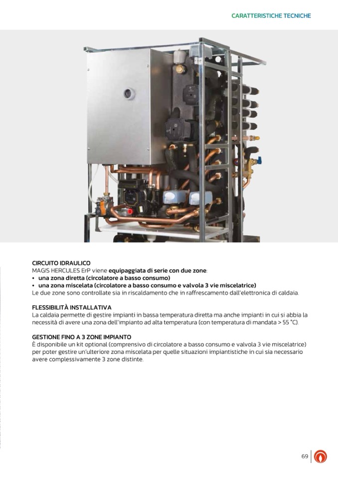 La caldaia permette di gestire impianti in bassa temperatura diretta ma anche impianti in cui si abbia la