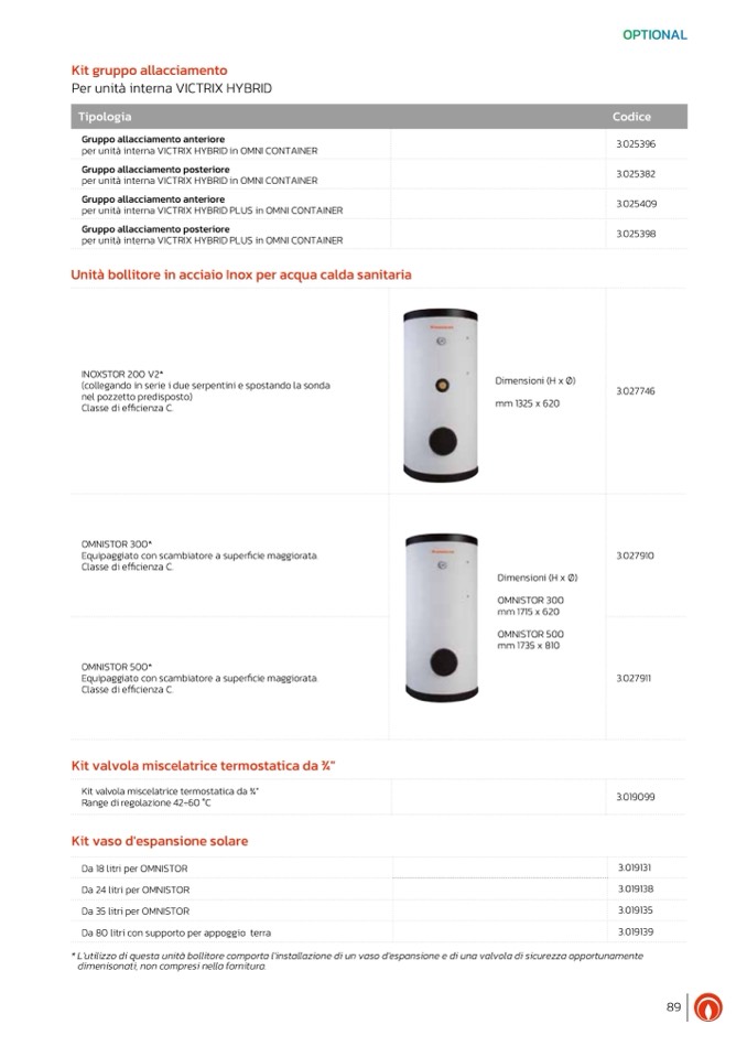per unità interna VICTRIX HYBRID in OMNI CONTAINER