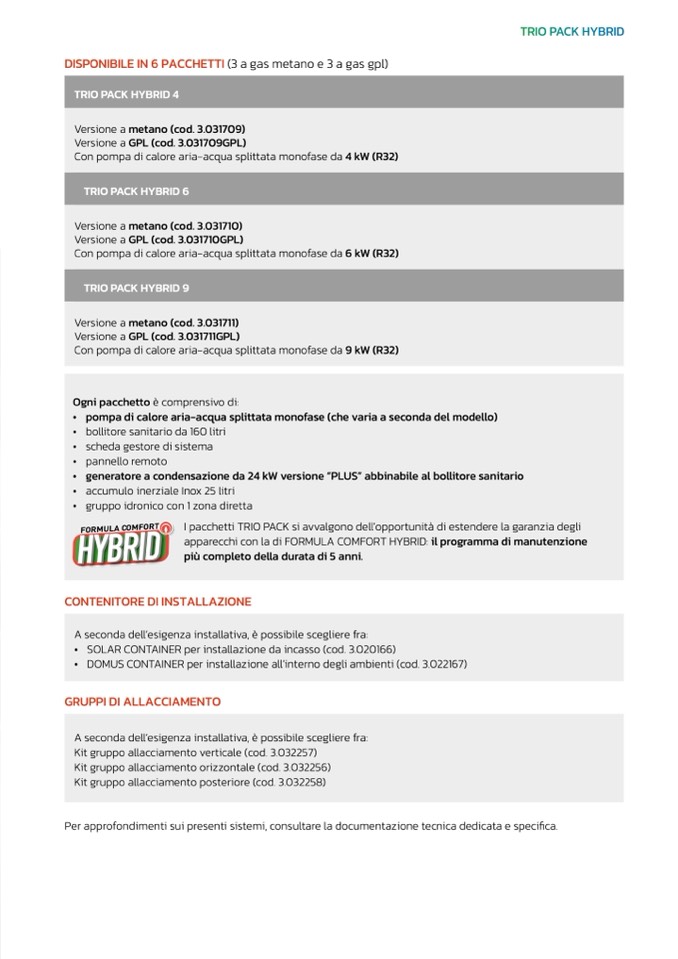 DISPONIBILE IN 6 PACCHETTI (3 a gas metano e 3 a gas gpl)