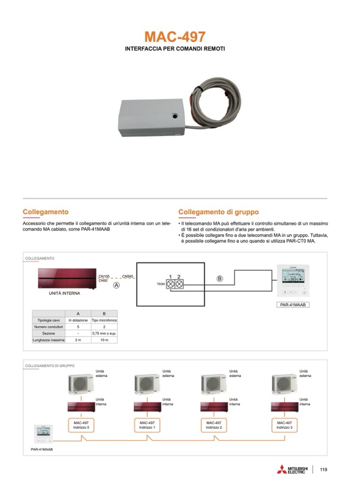 • È possibile collegare fino a due telecomandi MA in un gruppo. Tuttavia,