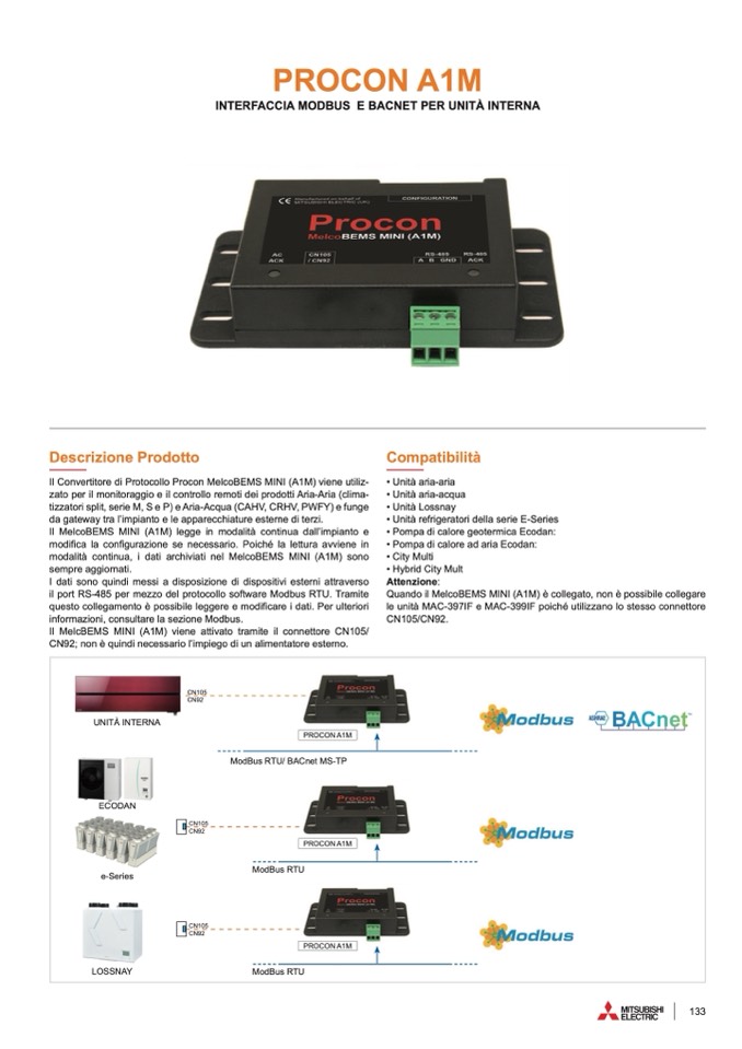 Il Convertitore di Protocollo Procon MelcoBEMS MINI (A1M) viene utiliz-