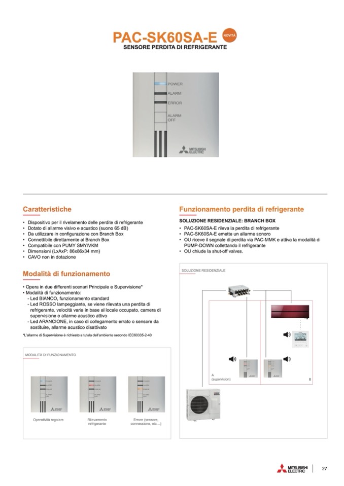 • PAC-SK60SA-E rileva la perdita di refrigerante