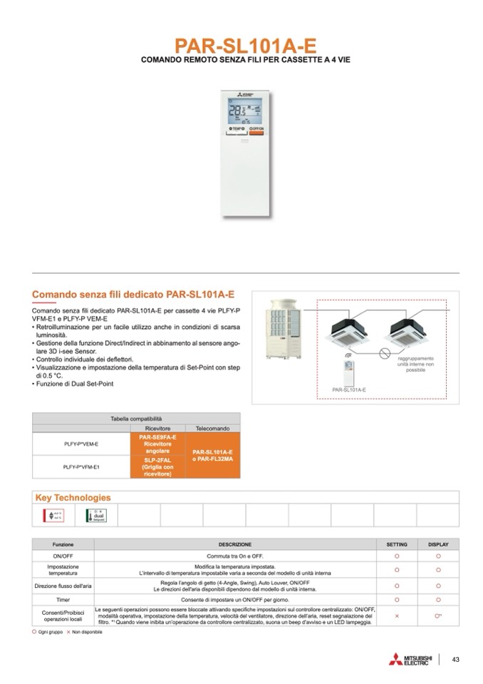 fili dedicato PAR-SL101A-E per cassette 4 vie PLFY-P