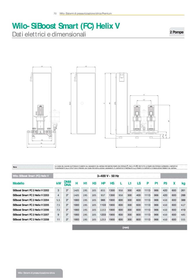LA CASSA DEL QUADRO ELETTRONICO È INSERITA SUL BASAMENTO DEL SISTEMA PER GESTIRE POMPE CON POTENZA P