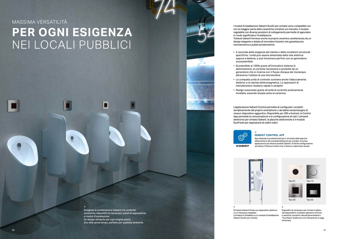 elettroniche e dei comandi elettronici per orinatoi. Un’unica
