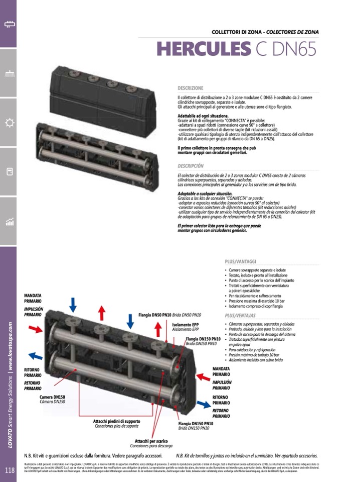 El colector de distribución de 2 o 3 zonas modular C DN65 consta de 2 cámaras