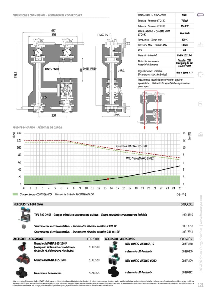 TV3-300 DN65 - Gruppo miscelato servomotore escluso - Grupo mezclado servomotor no incluido