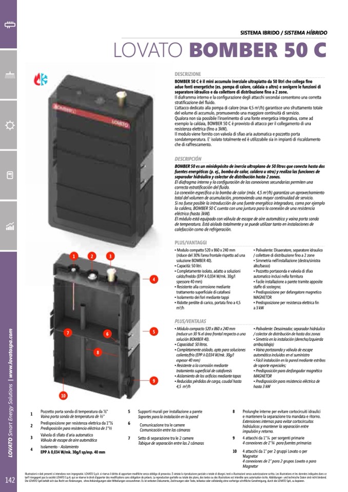 BOMBER 50 es un minidepósito de inercia ultraplano de 50 litros que conecta hasta dos