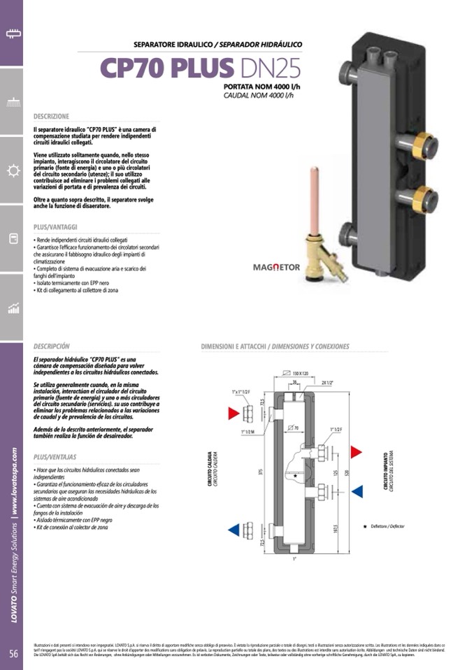 Il separatore idraulico “CP70 PLUS” è una camera di